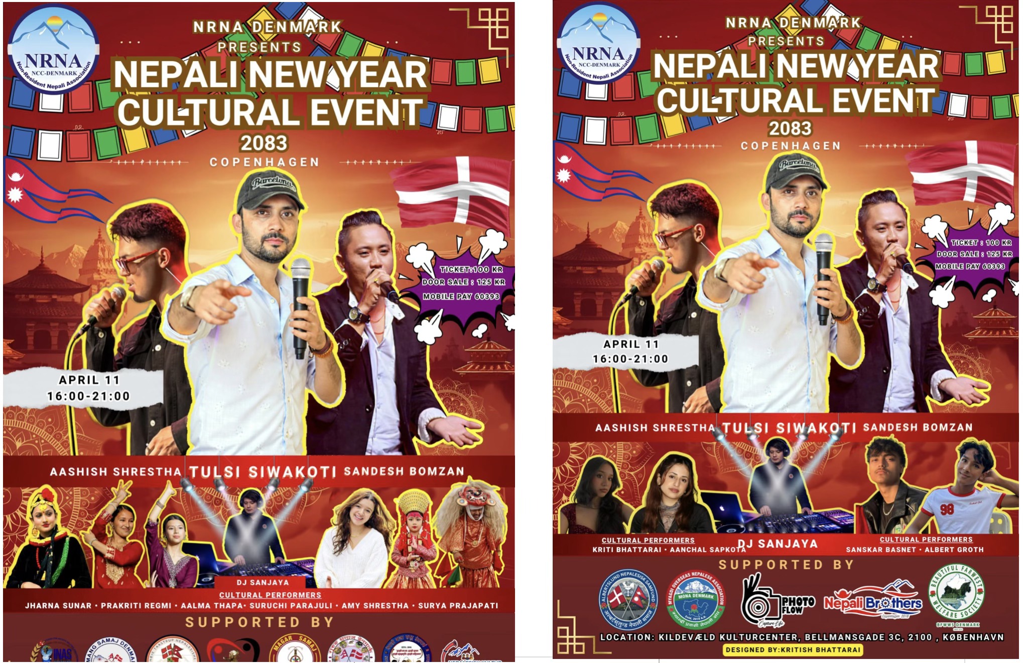 आदरणीय डेनमार्क वासी नेपाली आमा-बुबा, दिदी-बहिनी तथा दाजु-भाईहरु नमस्कार🙏 मिति अप्रिल ११, २०२६ शनिबारका दिन गैर आवासीय नेपाली संघ (एनआरएनए) डेनमार्कको आयोजनामा नेपाली नयाँ बर्ष २०८३ लाई लक्षित गरि " नेपाली नयाँ वर्ष शुभकामना साँझ" सांस्कृतिक कार्यक्रम सम्पन्न हुने जानकारी गराउन चाहन्छौं। विदेशमा बसेर पनि नेपाली भाषा, संस्कृति र परम्परालाई जगेर्ना गर्ने उद्देश्यले यो कार्यक्रम आयोजना गर्न लागिएको हो। यस विशेष कार्यक्रममा स्थानीय रूपमा सक्रिय व्यावसायिक गायक–गायिका र कलाकारहरू द्वारा आकर्षक सांगीतिक तथा सांस्कृतिक प्रस्तुतीहरू प्रस्तुत गरिनेछन्। लोकगीत, आधुनिक गीत, नृत्य तथा विविध सांस्कृतिक प्रस्तुतिहरूले कार्यक्रमलाई अझ मनोरञ्जनात्मक र स्मरणीय बनाउनेछन्। साथै, बालबालिका र युवाहरूका विशेष प्रस्तुतीहरूले नेपाली संस्कृतिको विविधता झल्काउने अपेक्षा गरिएको छ। एनआरएनए डेनमार्कले विदेशमा रहेका नेपालीहरूलाई एउटै मंचमा जोड्ने, आपसी सम्बन्ध मजबुत बनाउने तथा नयाँ पुस्तालाई नेपाली संस्कृतिसँग परिचित गराउने उद्देश्यका साथ कार्यक्रम आयोजना गर्दै आएको छ। यस्ता कार्यक्रमहरूले नेपाली पहिचान र संस्कृतिको संरक्षणमा महत्वपूर्ण योगदान पुर्याउने विश्वास लिइएको छ। यस अवसरमा डेनमार्कमा बसोबास गर्ने सम्पूर्ण नेपाली दाजुभाइ तथा दिदीबहिनीहरूलाई कार्यक्रममा उपस्थित भई नयाँ वर्ष २०८३ लाई सामूहिक रूपमा हर्षोल्लासका साथ मनाउन हार्दिक निमन्त्रणा गर्दछौ । कार्यक्रममा सहभागी भई कलाकारहरूको उत्कृष्ट प्रस्तुतीको आनन्द लिनुका साथै एकआपसमा शुभकामना आदानप्रदान गर्दै नयाँ वर्षलाई स्वागत गरौं भन्ने हार्दिक अनुरोध गर्दछौं । अन्त्यमा, नेपाली नयाँ वर्ष २०८३ ले सम्पूर्ण नेपाली समुदायको जीवनमा सुख, शान्ति, समृद्धि र सफलता ल्याओस् भन्ने कामना गर्दै सबैमा हार्दिक मंगलमय शुभकामना व्यक्त गर्दछौं। कार्यक्रम बिवरण: मितिः 11 अप्रिल ( शनिबार) २०२६ समयः १६:०० देखी २१:०० बजे सम्म स्थानः Kildevæld Cultural Center Bellmansgade 3C, 2100 Copenhagen Ø नोटः कार्यक्रम स्थल Paid Parking Area भित्र पर्दछ। थप जानकारीका लागि कार्यक्रम संयोजक सन्तोष वस्नेत (ph.no.42 33 07 68) ज्यु लाई सम्पर्क गर्नुहुन साथै nrna.dk को Events मा जानुहुन अनुरोध गर्दछौं। सम्पर्क नंम्वरः 42 33 07 68 सन्तोष वस्नेत कार्यक्रम संयोजक तथा उपाध्यक्ष गैर आवासीय नेपाली संघ, डेनमार्क। भवदीय गैर आवासीय नेपाली संघ,डेनमार्क परिवार